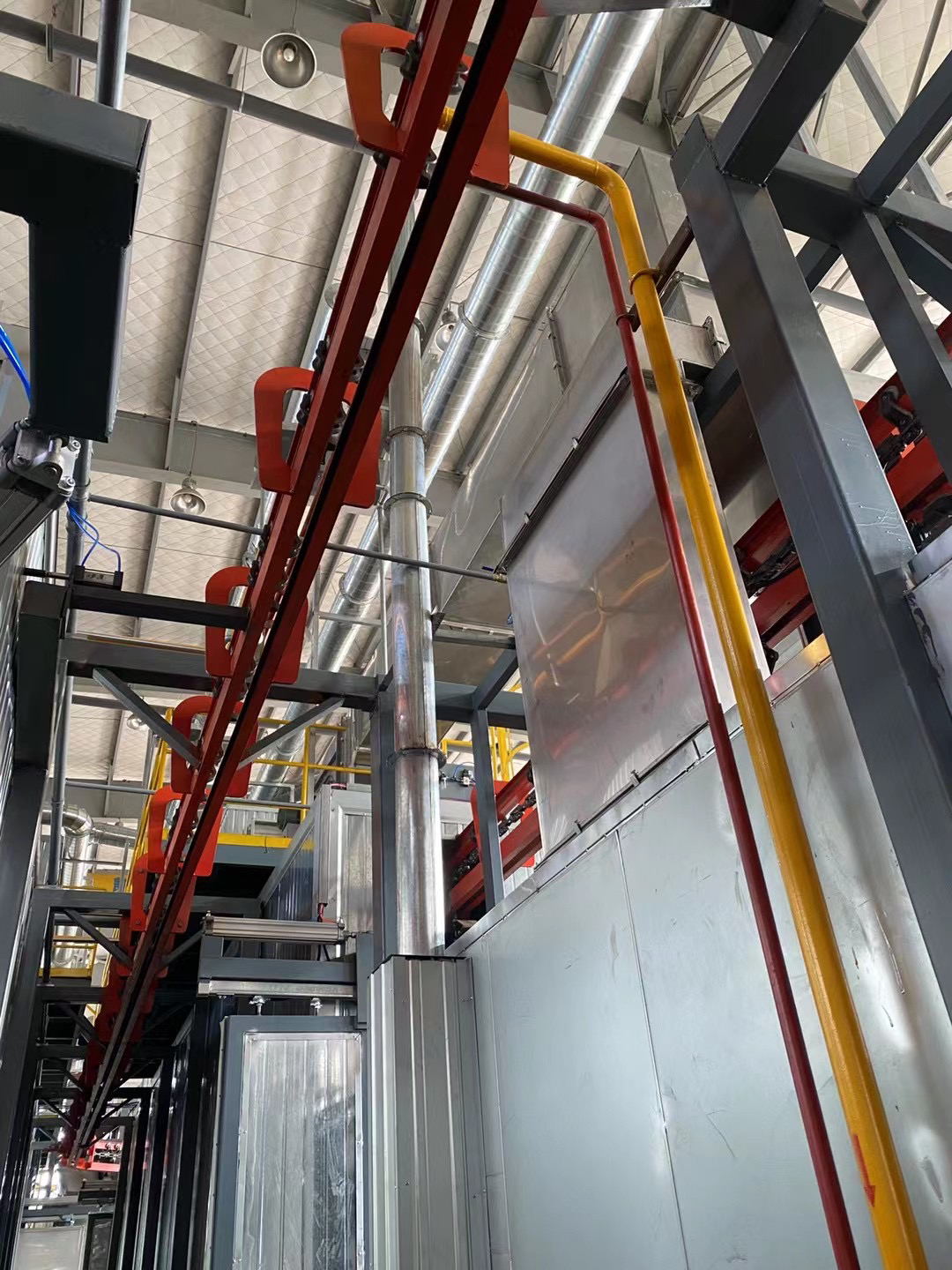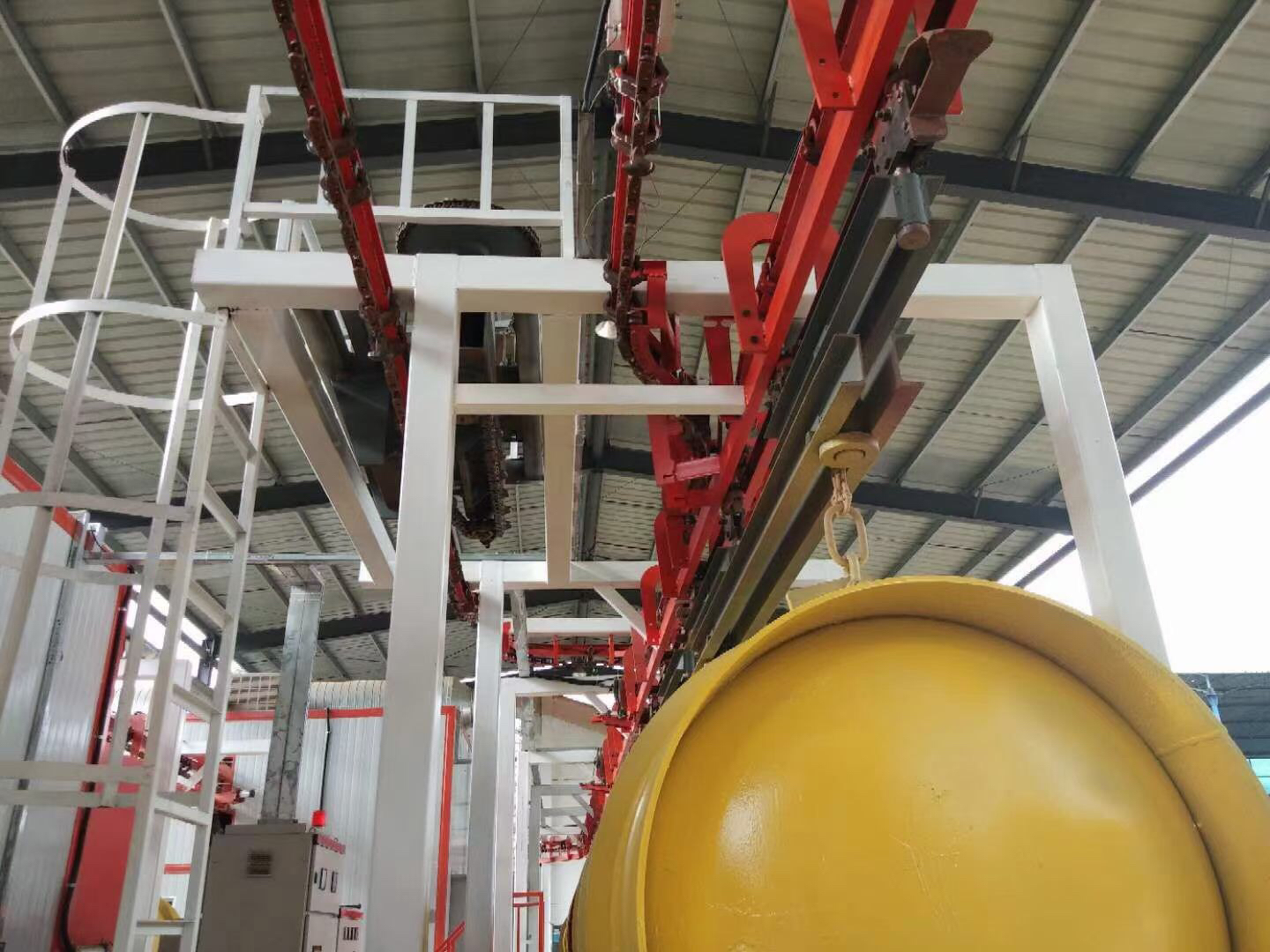 懸掛積放式輸送鏈又稱積放鏈,適用于高生產(chǎn)率、柔性生產(chǎn)系統(tǒng)的運輸設(shè)備,運輸作用強,貫穿生產(chǎn)線,工藝操作精良,集儲存和運輸功能于一體。積放式輸送設(shè)備在各行業(yè)尤其在汽車制造業(yè)廣泛應(yīng)用。懸掛積放式輸送鏈機包括以下幾個部分:輸送機軌道、牽引鏈條、積放小車組、驅(qū)動裝置、張緊裝置、停止器、滾子組回轉(zhuǎn)裝置、光輪回轉(zhuǎn)裝置、道岔、 止退器、氣路控制裝置等。積放鏈通過小車組與輸送鏈推頭的嚙合與脫開來實現(xiàn)吊具上的車輛輸送或停止積放。快鏈用于車輛輸送或積放,根據(jù)生產(chǎn)線長短來存放車輛數(shù)量。慢鏈用于整車裝配,根據(jù)工位及鏈速來調(diào)整節(jié)拍,吊具上車輛由牽引鏈帶著走。