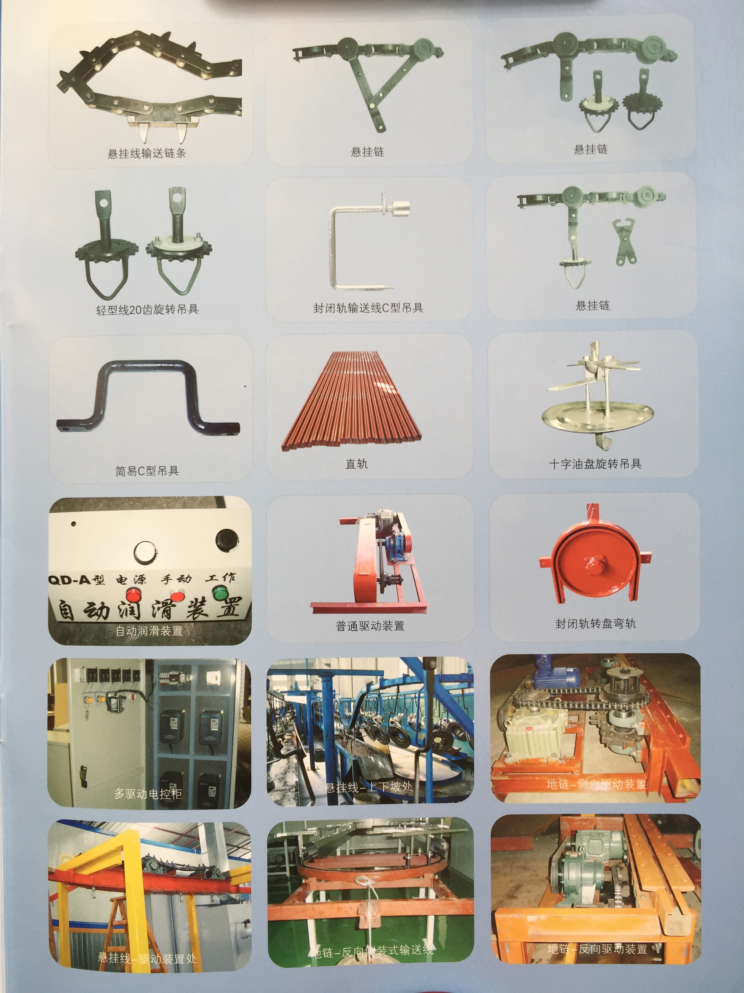 本公司主要生產(chǎn)QXG(TXJ)輕型懸掛輸送機(jī)和XT系列重型懸掛輸送機(jī)。