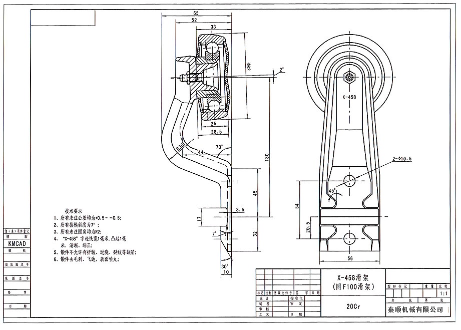 小車架制造分為精密鑄造和鍛造兩種,鑄件又分為鑄鐵件和鑄鋼件兩種?;苎b有滾動軸承,且在滑架端部還裝有壓注式油杯,保證潤滑良好,運行阻力小,其最高使用溫度為200攝氏度,如果使用溫度超出;經(jīng)兩方協(xié)商可設計制造特殊結構的滑架,或者采用石墨粉潤滑。