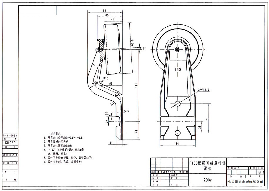 小車(chē)架制造分為精密鑄造和鍛造兩種,鑄件又分為鑄鐵件和鑄鋼件兩種?;苎b有滾動(dòng)軸承,且在滑架端部還裝有壓注式油杯,保證潤(rùn)滑良好,運(yùn)行阻力小,其最高使用溫度為200攝氏度,如果使用溫度超出;經(jīng)兩方協(xié)商可設(shè)計(jì)制造特殊結(jié)構(gòu)的滑架,或者采用石墨粉潤(rùn)滑。