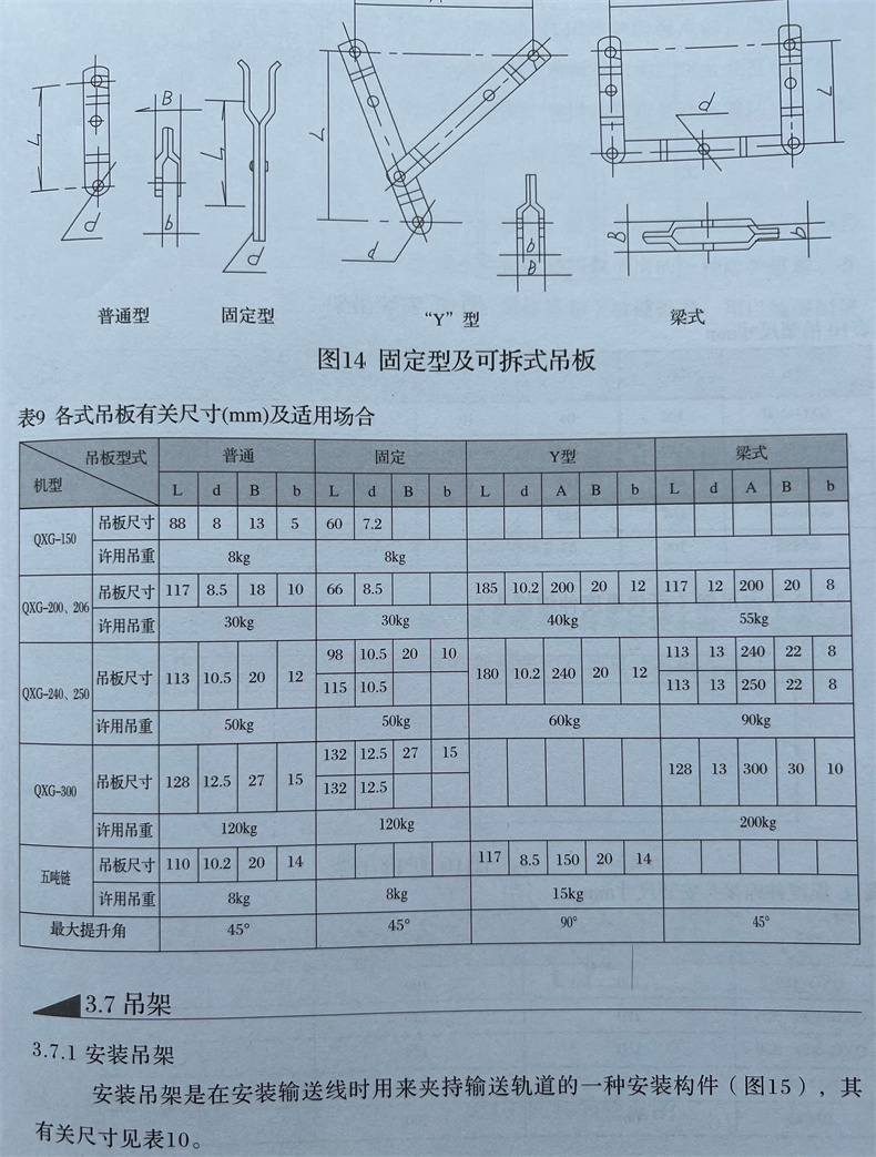 吊具可分為固定式吊具和可拆式吊具(活絡(luò)吊具)兩種,我廠生產(chǎn)的QXG系列懸掛輸送機都采用裝拆方便的可拆式吊具??刹鹗降蹙呓Y(jié)構(gòu)有普通型,Y型以及梁式等三種樣式。(固定吊具鏈條 可根據(jù)客戶 要求定做) 旋轉(zhuǎn)吊具:軌道上裝有吊具轉(zhuǎn)向器,每次可自動旋轉(zhuǎn)360度(每一次吊具相連使掛上的工件能自動作360°的轉(zhuǎn)動)。 旋轉(zhuǎn)吊具上也可配各式托油盤,圓盤可防止油污、灰層掉落到產(chǎn)品上。各式旋轉(zhuǎn)吊具,可根據(jù)現(xiàn)場需要進行選擇,可按照需要訂做訂加工。 十字吊具需與Y型吊具配合使用,鏈條運作時,十字支腳碰到裝在特定位置的吊具轉(zhuǎn)向器,可使懸掛工件做90度旋轉(zhuǎn)。