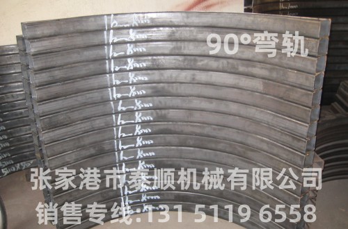 上拱彎軌和下拱彎軌專門用于上下坡段,彎軌截面尺寸與直軌相同,其回轉(zhuǎn)半徑R和轉(zhuǎn)角A的標(biāo)準(zhǔn)可來電資詢,特殊規(guī)格可按用戶要求定型號(hào)。